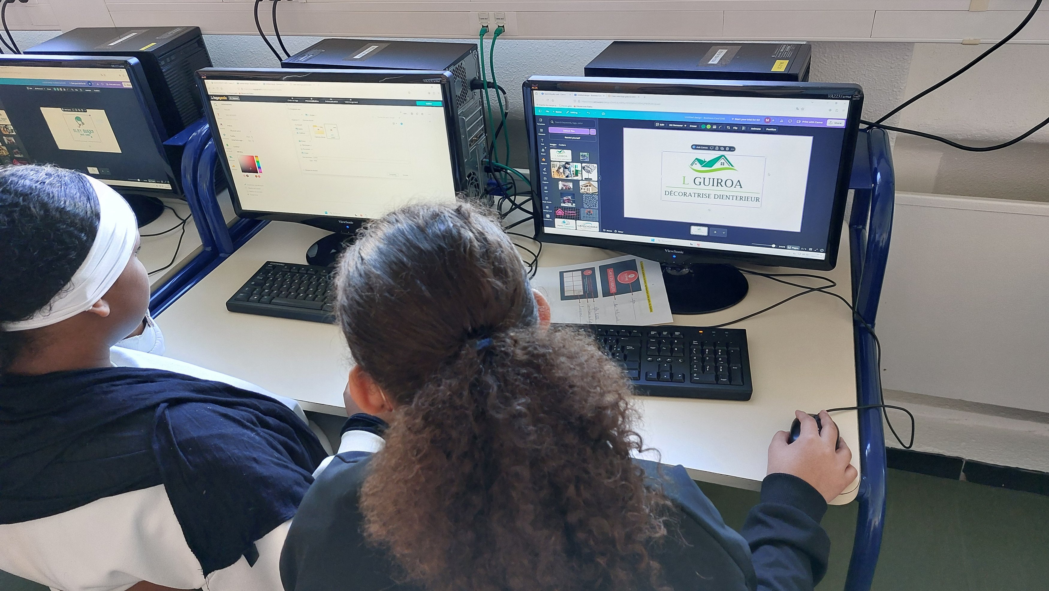 M. Pasquereau initie le groupe par un travail sur l’outil CANVA en vente (réalisation de logo, carte de visite...). M. Bejean propose une découverte des métiers, des outils et des techniques du bâtiment (peinture, plâtre, électricité...).