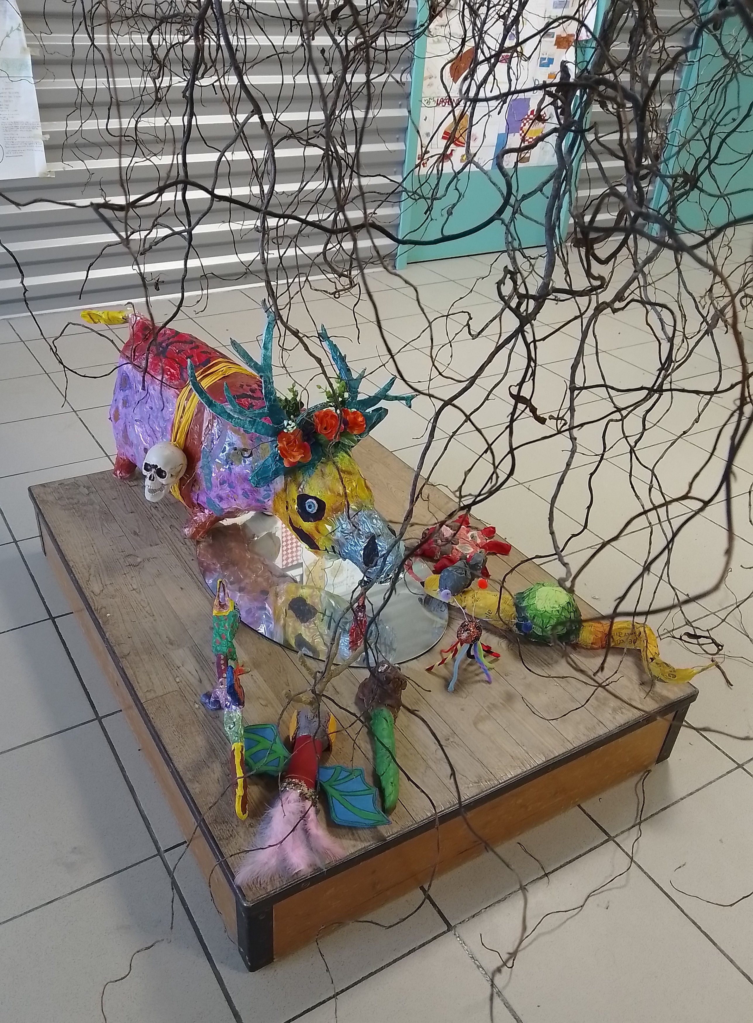 [Dans le cadre de ce projet, les élèves ont travaillé en espagnol et en arts plastiques sur les alebrijes, ces animaux imaginaires et colorés emblématiques du folklore mexicain. Sculptés en bois ou en carton, les alebrijes combinent des éléments de divers animaux : par exemple, des lézards ornés de plumes ou des éléphants-papillons. Dans le film “Coco”, ces créatures prennent le rôle de guides spirituels dans le Monde des Morts.