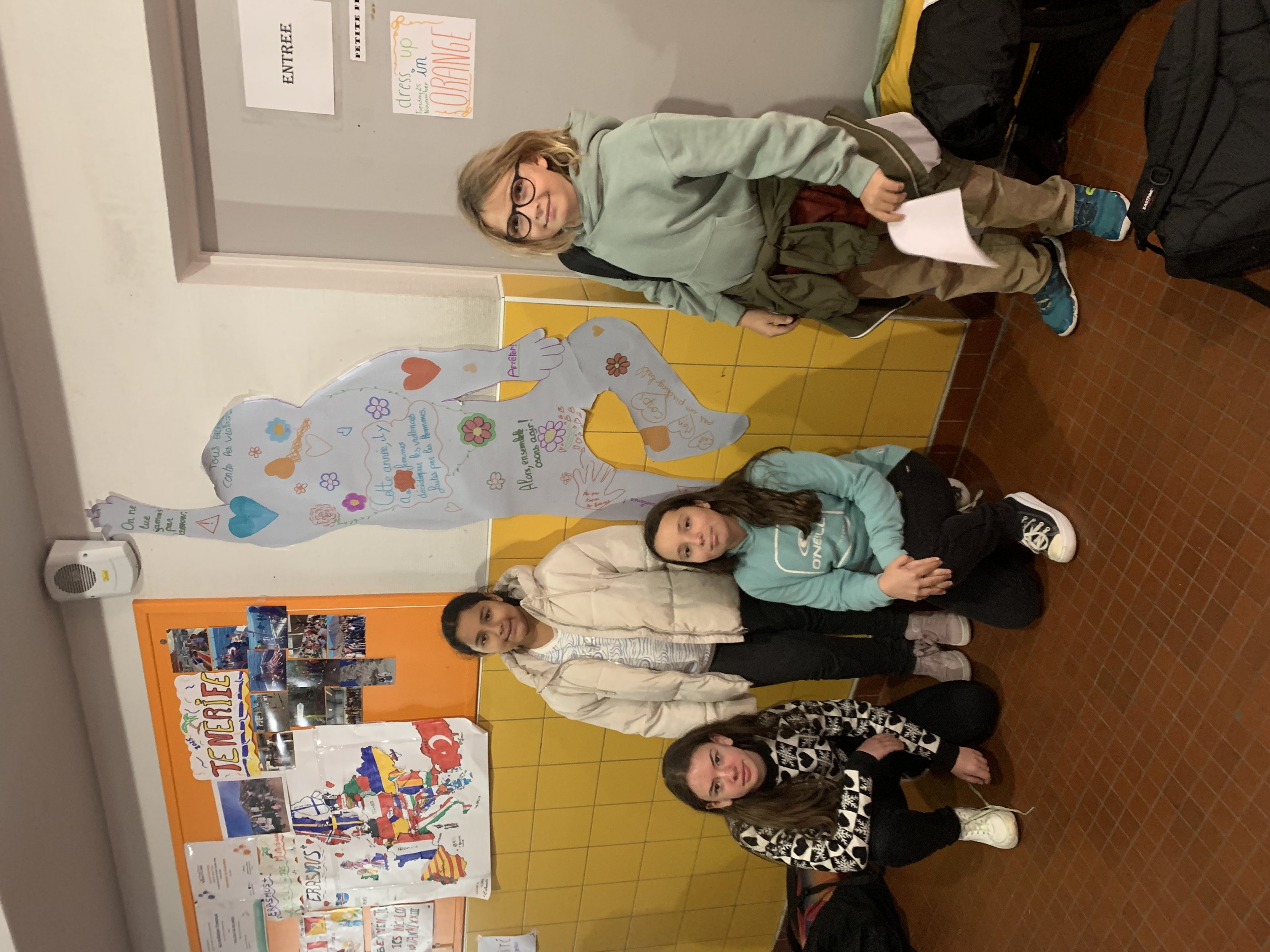 Le 25 Novembre des éléves ont participé à l’organisation de la journée contre les violences faites aux femmes en découpant des silhouettes en papier sur lesquelles ils ont inscrit des slogans et des pourcentages qui révélaient la terrible réalité de milliers de femmes en France et dans le monde. Les élèves de 3eme avec l’aide Mme Ballon ont fait des pochoirs qu’elles ont également accroché sur les murs du collège. Nous remercions tous les élèves qui se sont engagés et nous vous donnons rendez vous pour une prochaine action au collège pour l’égalité.